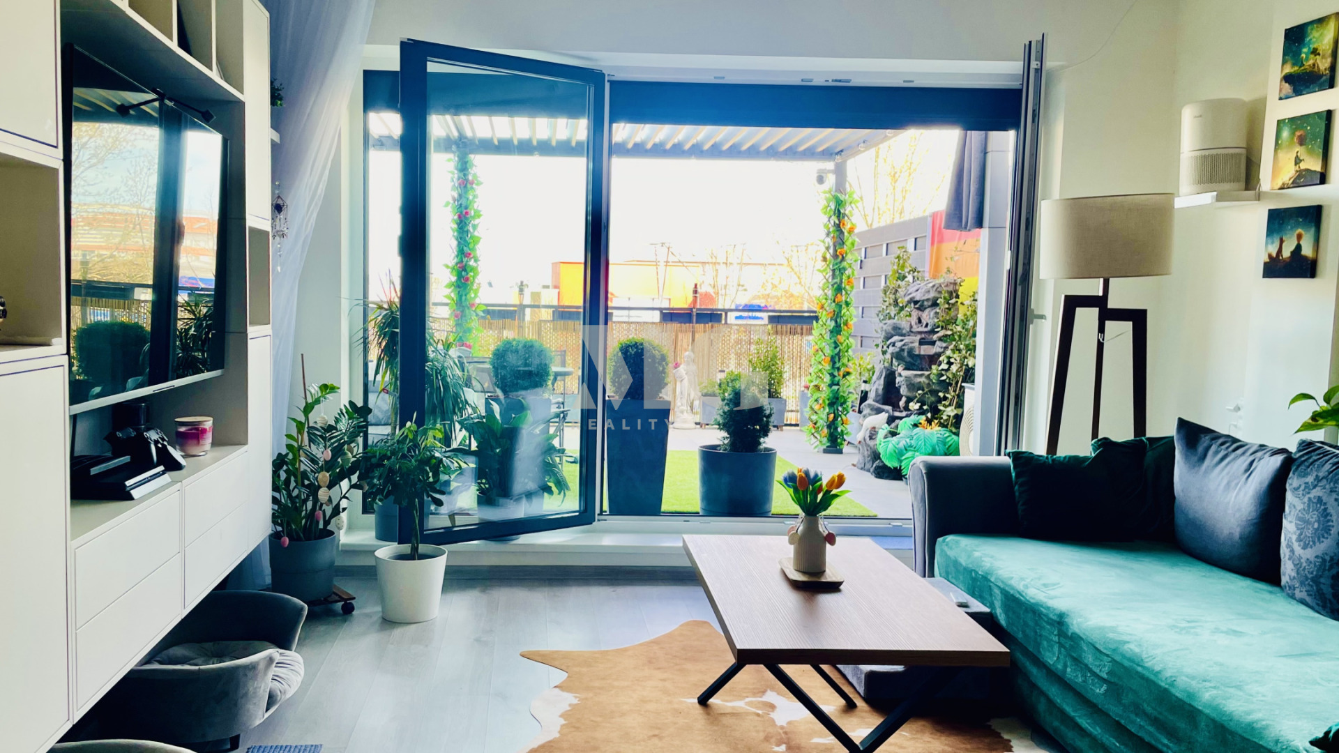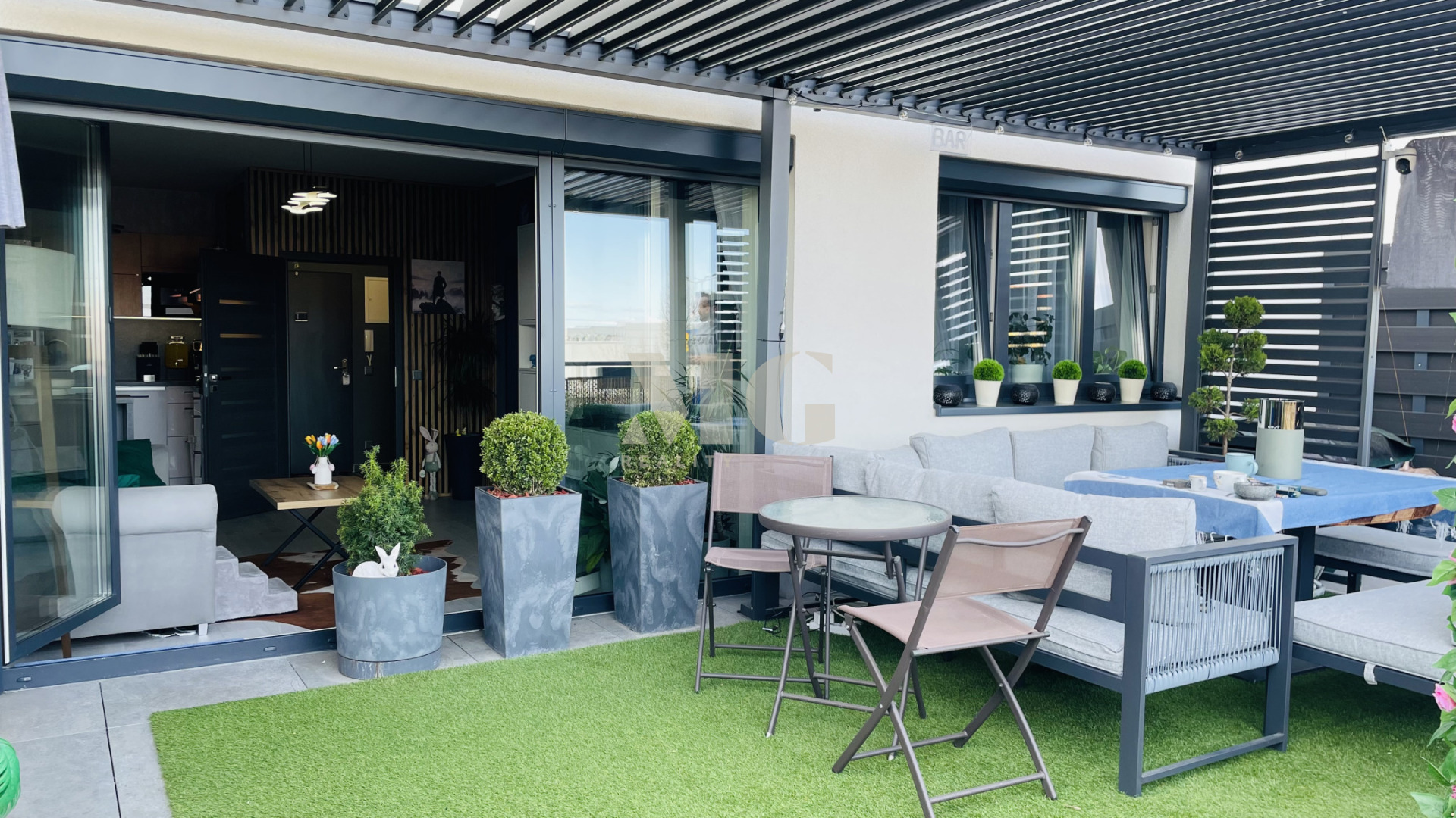 Zprostředkujeme prodej nadstandardně vybavené bytové jednotky 2+kk ve 2.NP o výměře 48,38 m2 s velkorysou terasou o výměře 38,4 m2, sklípkem o výměře 4 m2 a krajovým garážovým parkovacím stáním v 1.PP novostavby rezidenčního objektu se dvěma výtahy v ul. Arménská Kladno. Součástí bytu je i jeho nadstandardní vybavení, a to zejména klimatizační jednotka zn. Hitashi, klimatická dálkově ovládaná pergola 6 x 3 m, dálkově ovládané před okenní žaluzie. Plně vybavená kuchyňská linka zn. Oresi s lednicí a mrazákem zn. Samsung, digestoř, indukční varná deska, el. trouba, mikrovlnná trouba, myčka vše zn. Gorenje, dřez a výsuvná baterie zn. Franke, dále barový stůl a 2 židle, TV stěna a menší úložné skřínky, dálkově stmívatelné stropní osvětlení a v ložnici prosklená rohová šatní skříně. Případné další vybavení a designová dekorace dle vzájemné dohody. Pro více informací a možnosti výhodnějšího financování, doporučujeme osobní prohlídku.
